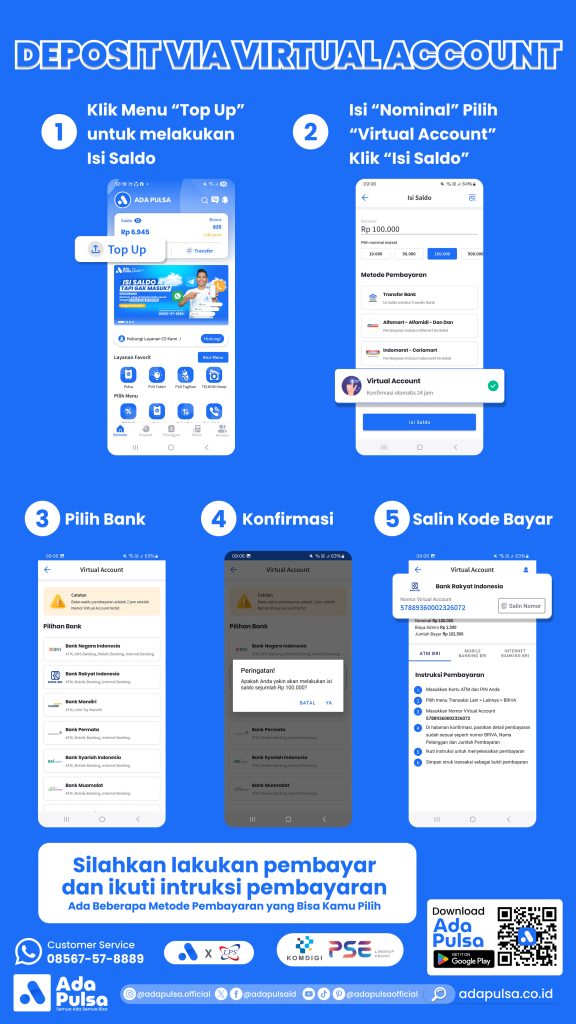 4. Simpan bukti pembayaran untuk konfirmasi ke Cs Ada Pulsa 085-6757-8889 jika saldo belum masuk.