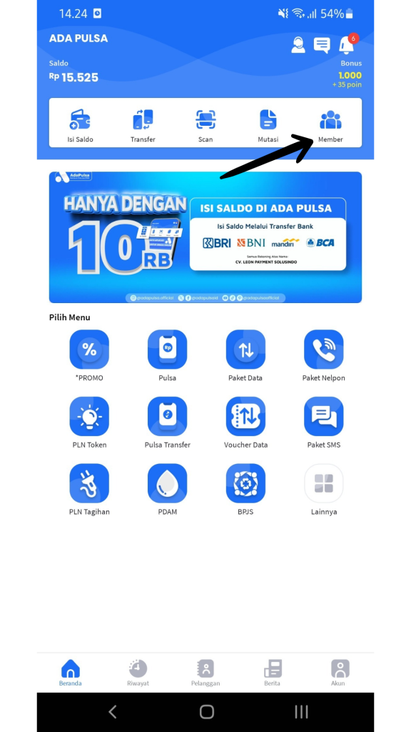 CARA MENDAFTARKAN MEMBER DI ADA PULSA.